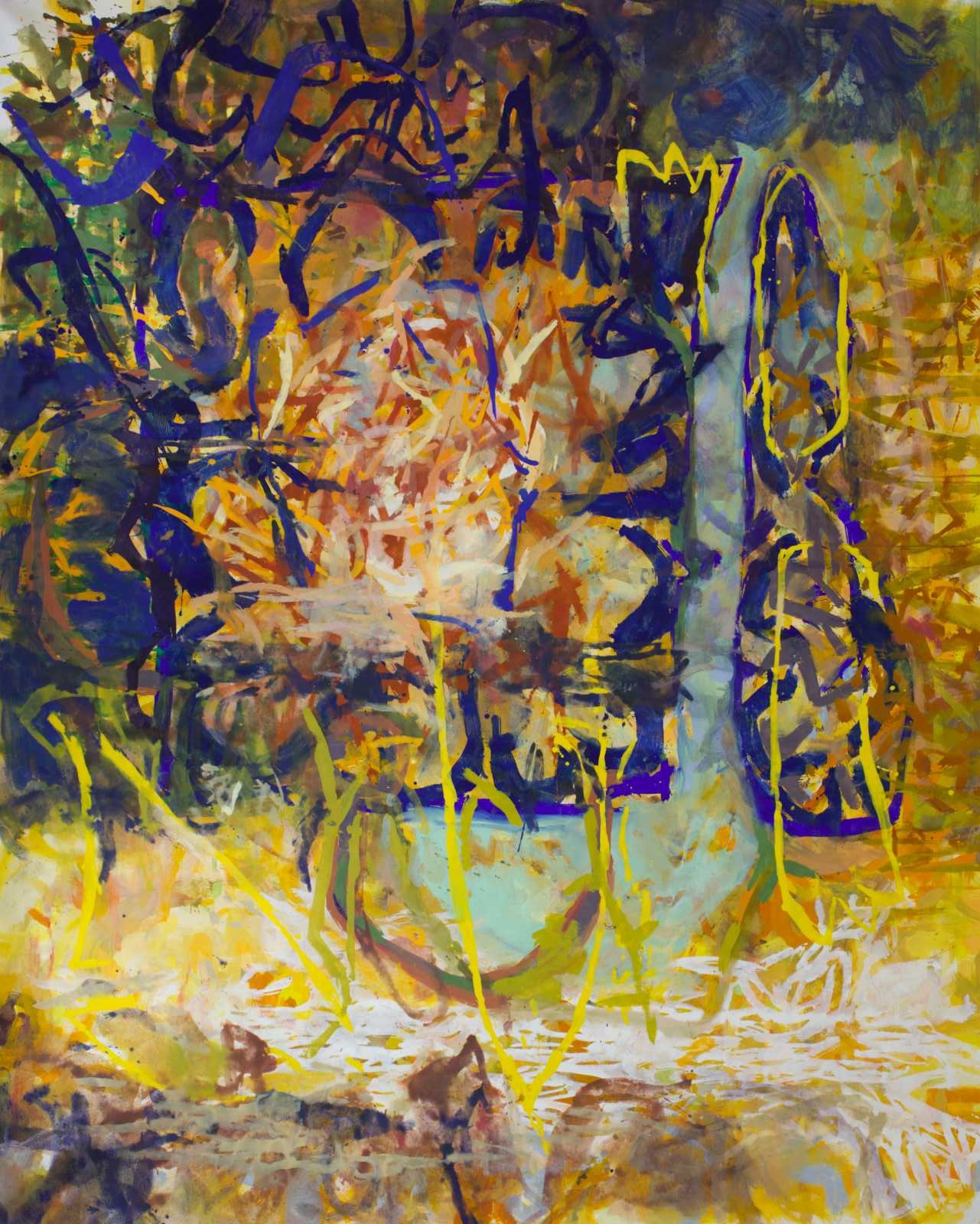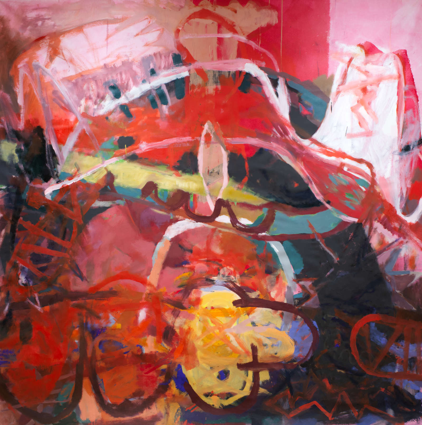 Es ist ein von Intuition und Spontanität geleitetes Malen, sehr anstrengend, weil das Ziel bis zuletzt nicht feststeht und der Grad der Bildordung mit der Dynamik des Prozesses ausgewogen werden muss. Es gibt sehr wilde Phasen des Arbeitens, dann auch wieder ruhige, sehr reflektierte Abschnitte. Am Ende sollte eine kompositionelle Struktur entstanden sein, die beidem Rechnung trägt.